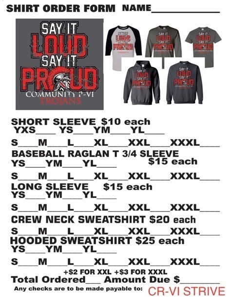 If you would like to order a shirt, please send payment and order to the HS office.
